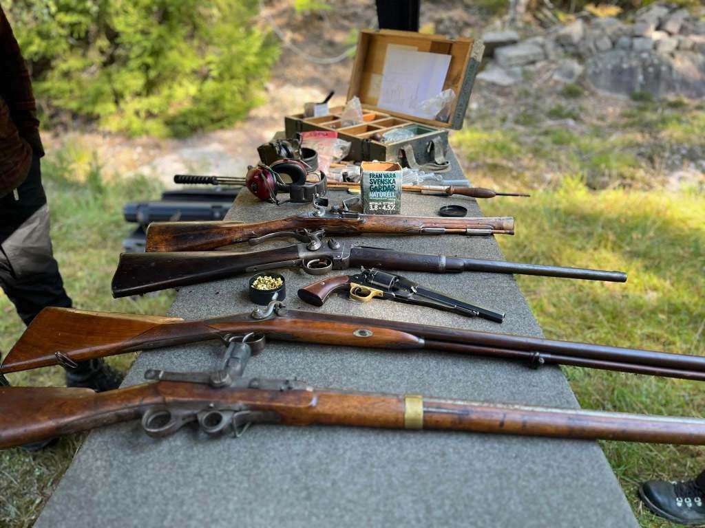 Urval av vapenssystem: Luntlås, snapplås, flintlås, musköt, studsare, lodbössa, miniégevär, kammarladdare, slaglåsrevolvrar, hagel, patronladdade slaglåskarbiner. Det går också bra att ta med egna vapen.